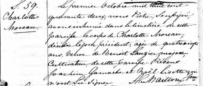 (6) Pour plusieurs individus, je n'ai pas trouvé de certificat de décès. C'est fort exigeant de chercher un certificat de décès. Lorsqu'on ne sait pas où l'individu a vécu, il est difficile pour nos moteurs de recherche de les trouver. La plupart du temps, on en trouve plusieurs, mais on ne peut déterminer lequel correspond à celui qui fait l'objet de notre recherche.