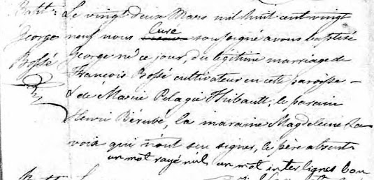 Mariage entre Jean-Baptiste Bossé I & Madeleine Pelletier,